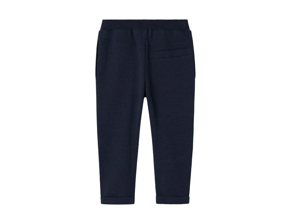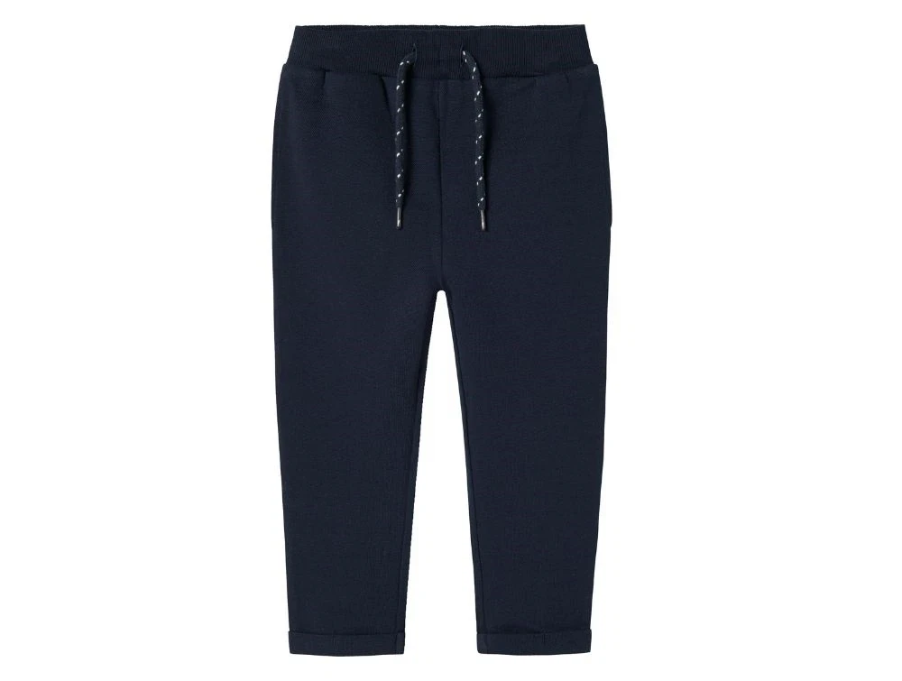 Bukser i mørkeblå (navy blazer) fra Name It i en blød sweatkvalitet med opsmøg og justerbar bindesnor i taljen.