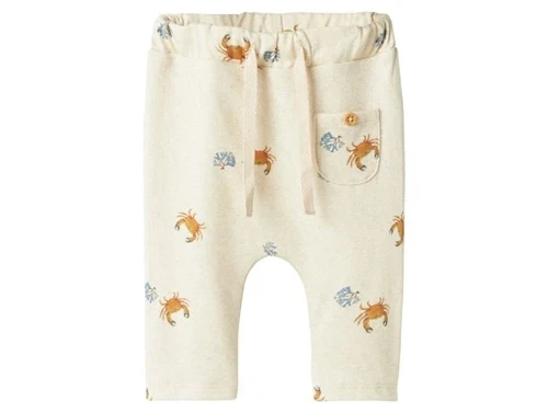 Bukser i beige (peyote melange) med print af krabber fra Name It.