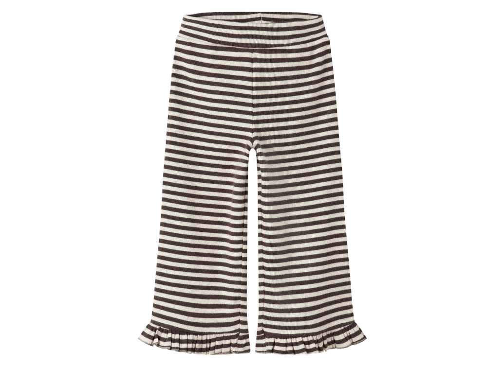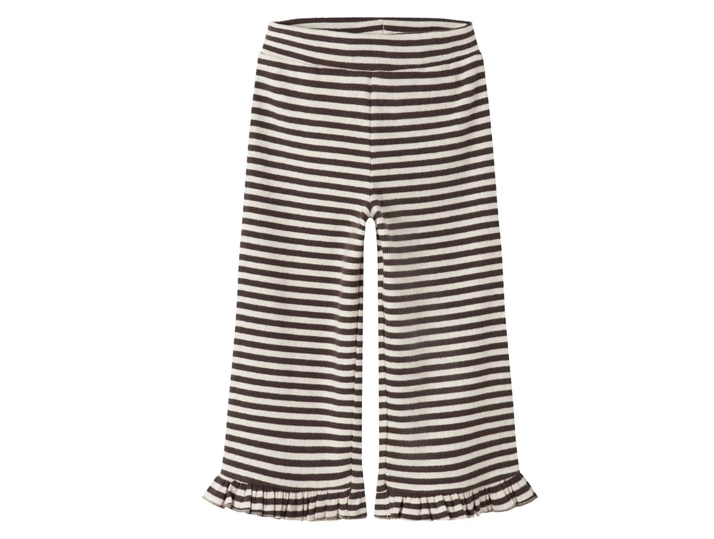 Name It bukser i brun og råhvid stribet design med flæsedetalje