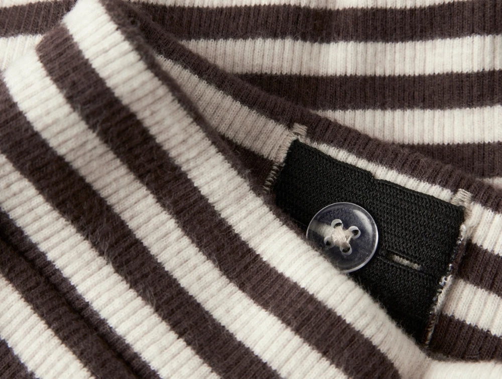 Bukserne er fremstillet i en blød og fleksibel ribkvalitet med garnfarvede striber, der holder farven flot. Det brede ben og de fine flæser giver et pænt fald og en afslappet silhuet. Perfekte til både hverdag og pænere brug.