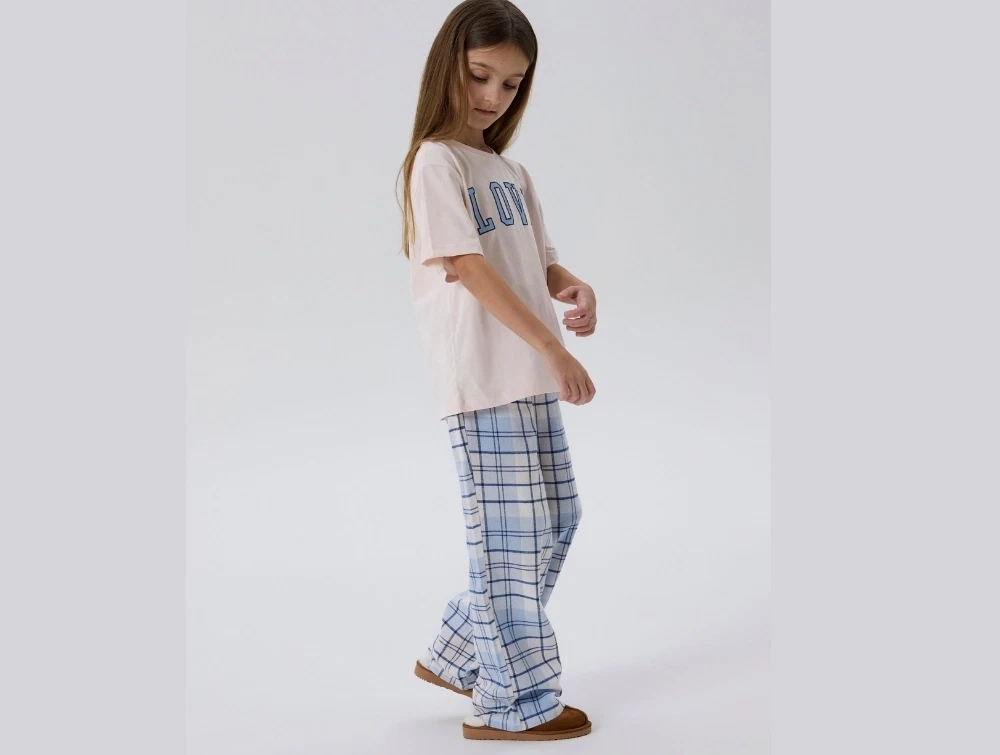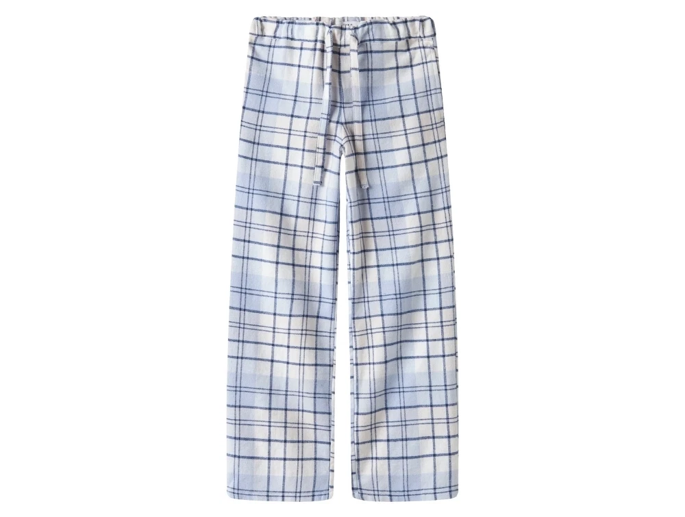Bukserne har en almindelig pasform med elastik i taljen, justerbar knaphulselastik og fast bindesnor. Fremstillet i blød, vævet bomuld med klassisk ternet mønster, der giver et hyggeligt udtryk.