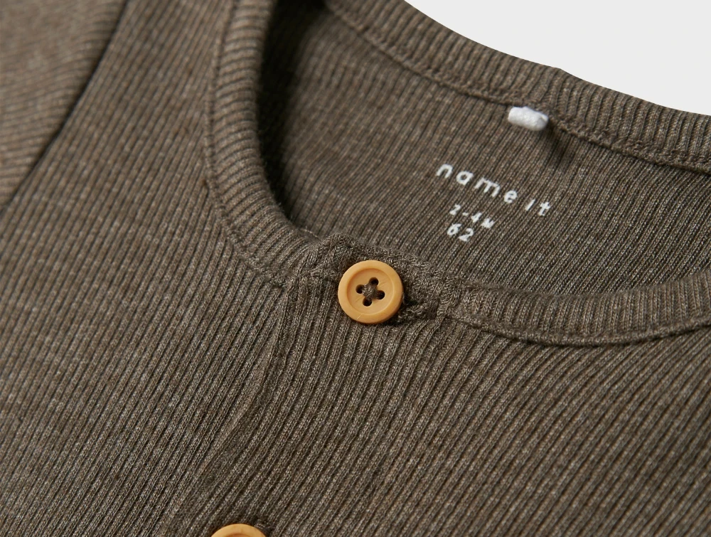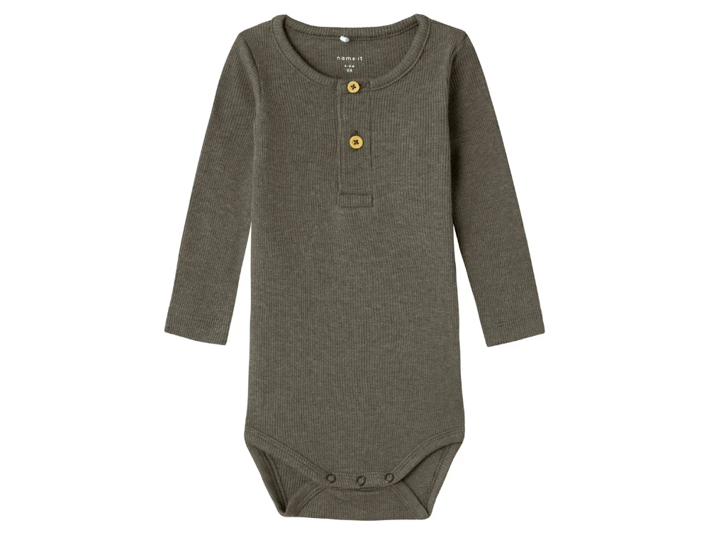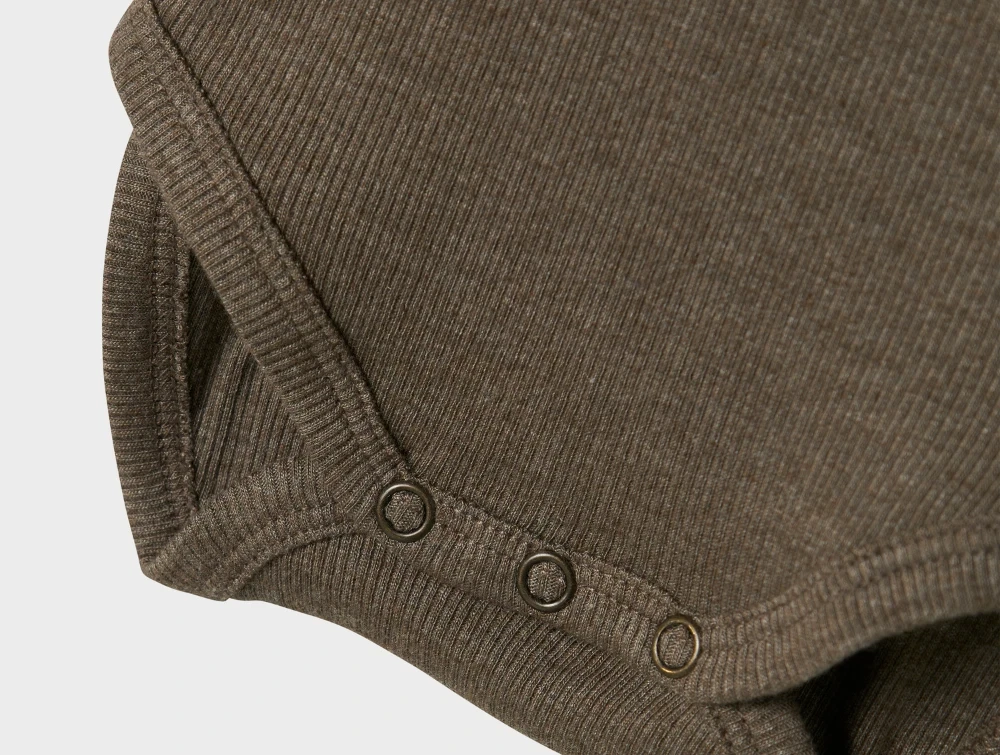Klassisk body i rib i farven bungee cord melange fra Name It.