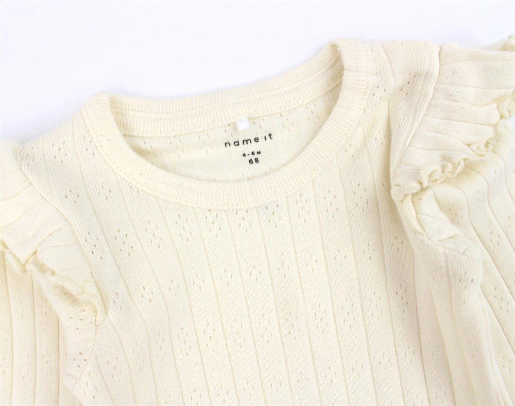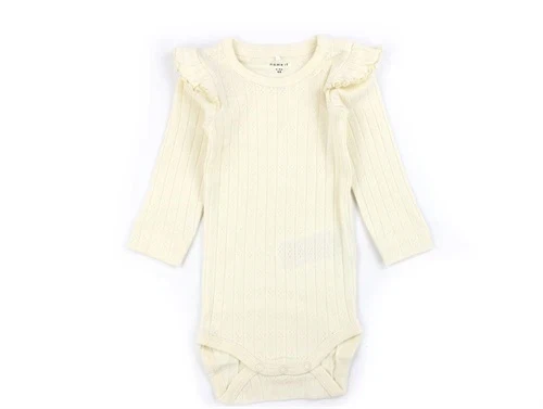 Langærmet body i farven buttercream med flæser fra Name It.