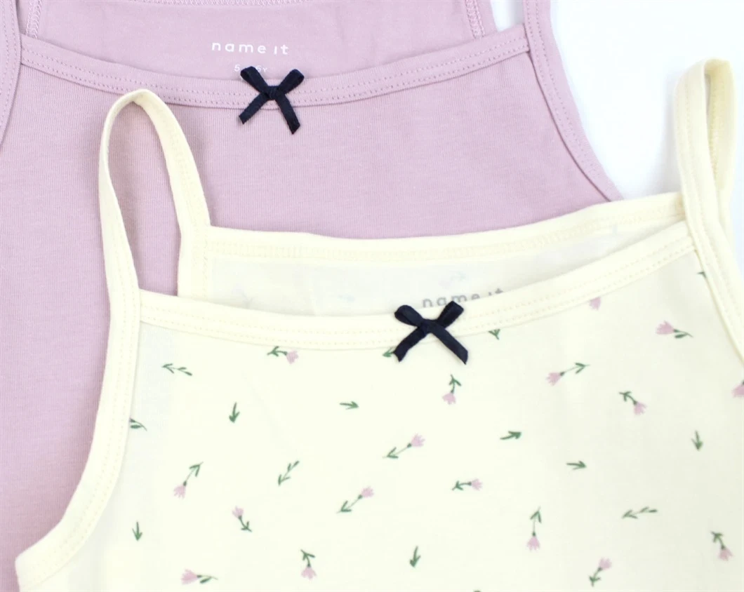 Pakken indeholder én ensfarvet undertrøje og én blomstret undertrøje.