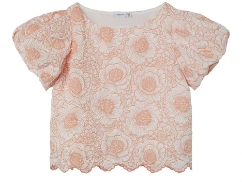 Smuk vævet top i farven cantaloupe med flot blomstermønster fra Name It.