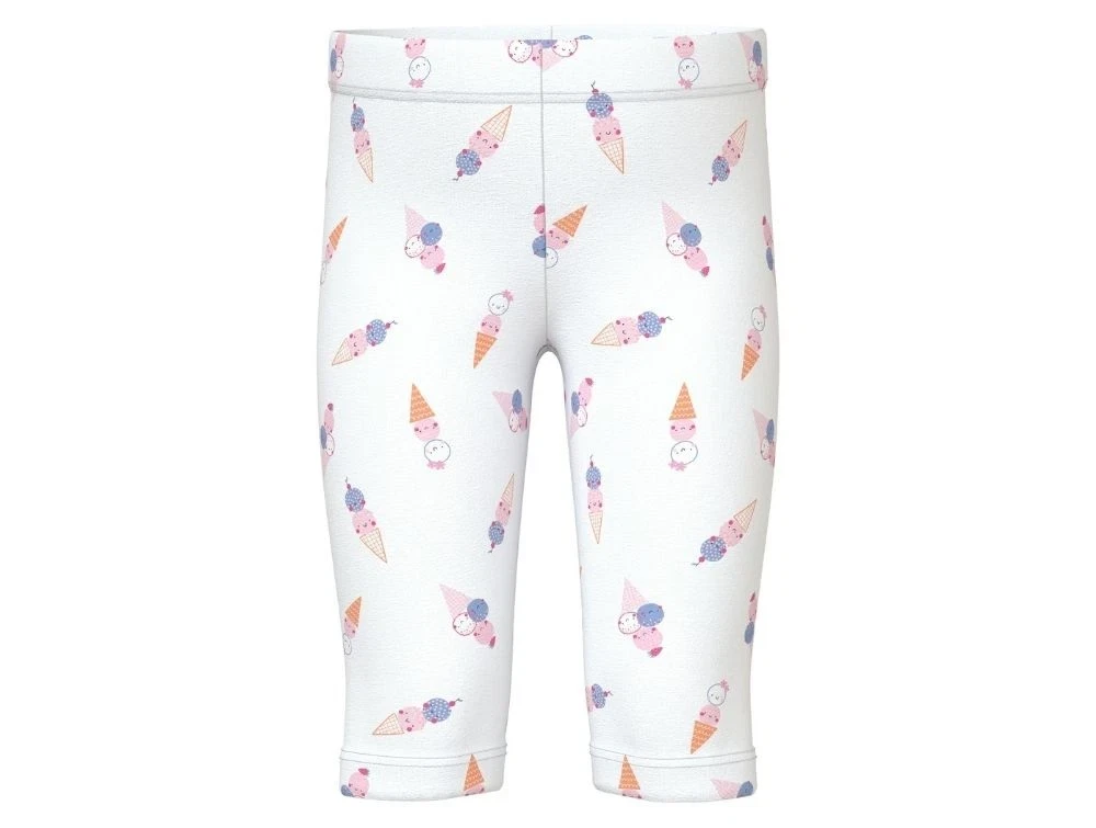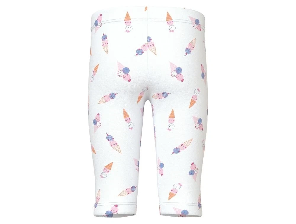 Capri leggings i klassisk hvid med print af små vaffelis med ansigter. Leggingsene har en kort længde lige under knæet, der gør dem ideelle under kjoler og nederdele eller som et let valg på varme dage.