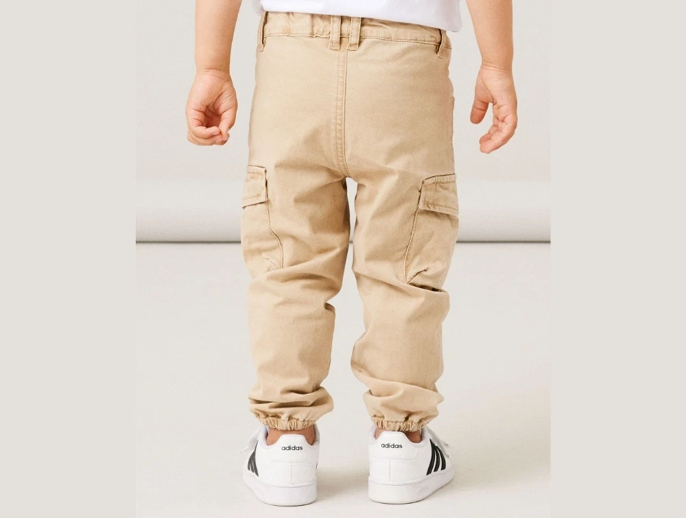 Cargo bukser i beige nuance fra Name It. Bukserne er lavet i blød twillvævet kvalitet med elastik i taljen og ved anklerne, som giver god bevægelsesfrihed. Perfekte som en slidstærk hverdagstyle til børn.