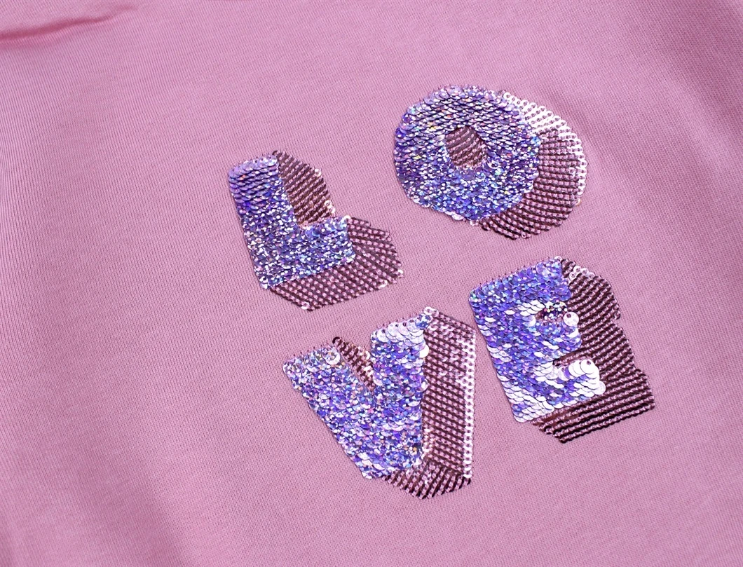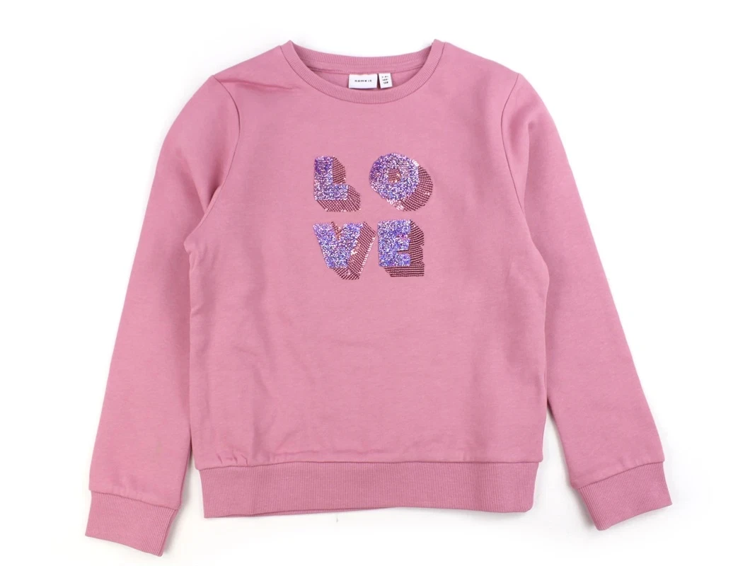 Sweatshirt i farven cashmere rose med paillet-tekst fra Name It.