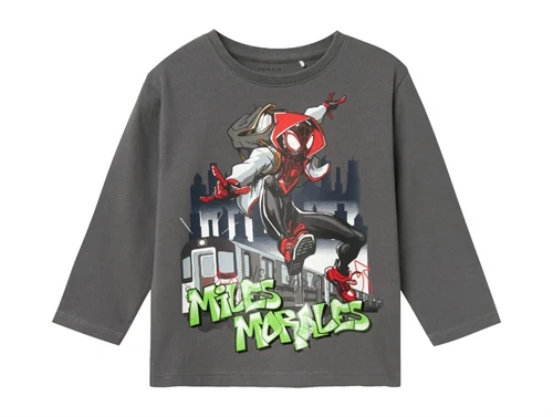 Langærmet t-shirt med Spiderman tema i farven castelrock fra Name It.
