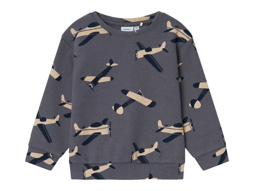 Sweatbluse i farven castlerock med flyvemaskiner fra Name It.