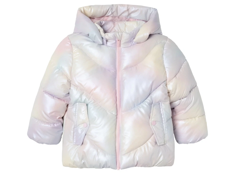 Puffer vinterjakke i farven cherry blossom med aftagelig hætte med trykknapper fra Name It.