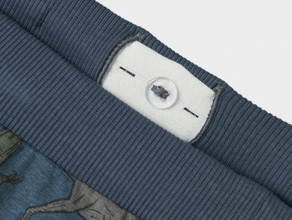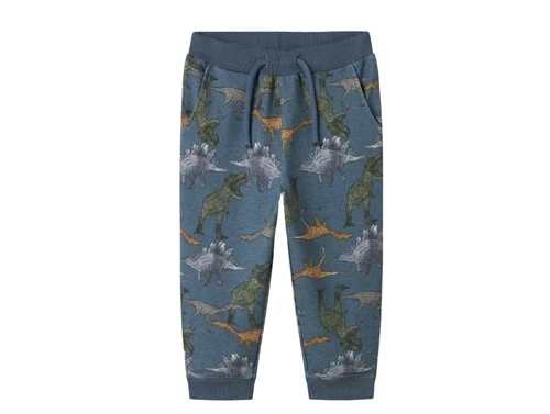 Sweatbukser i farven china blue med dinoprint fra Name It.