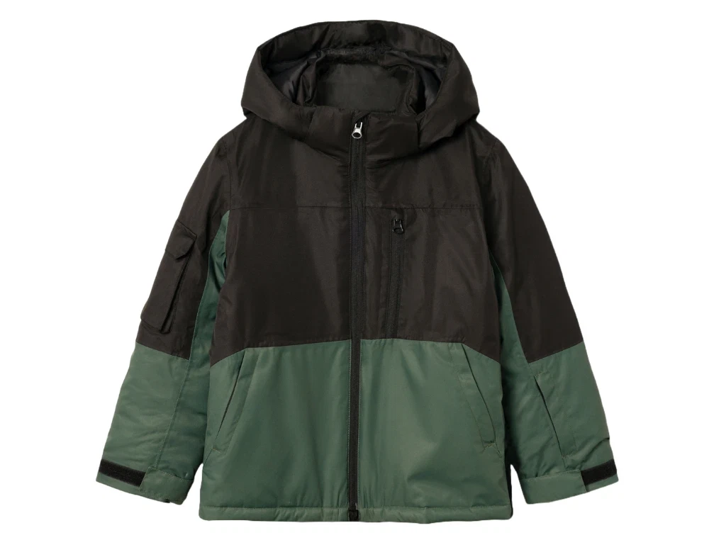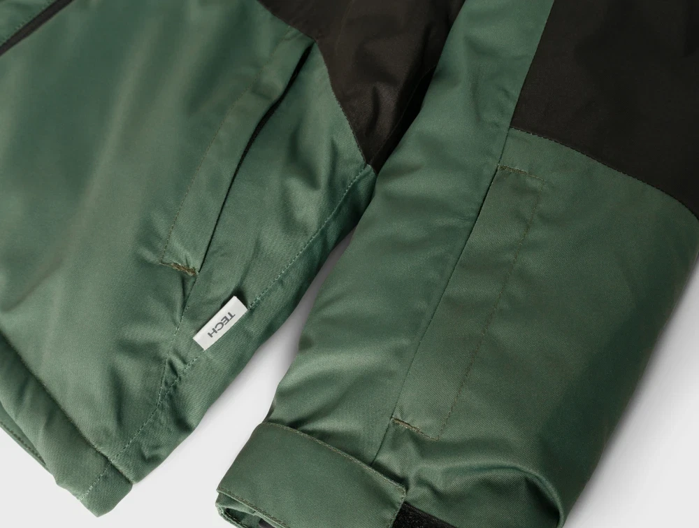 Lækker tech skijakke i farverne sort og climbing ivy fra Name It.