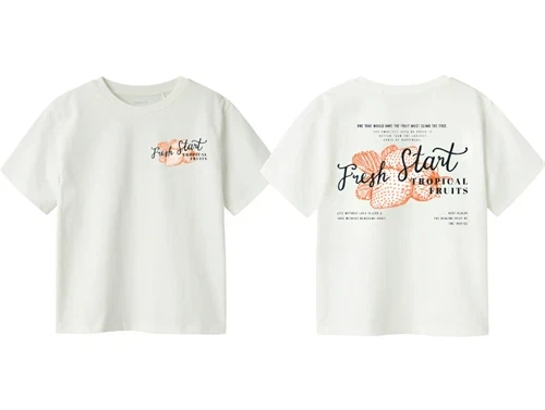 T-shirt i farven cloud dancer med cool print på front og ryg fra Name It.