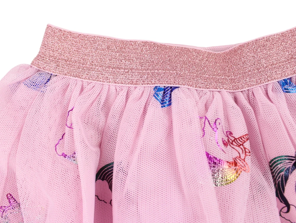 Nederdel i farven corsage med metallic enhjørningprint og glimmerelastik fra Name It.