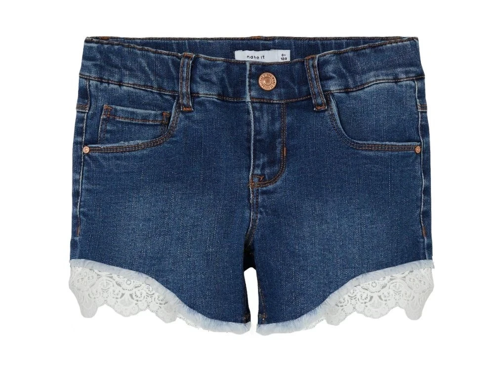 Denimshorts i farven dark blue denim med blondekant fra Name It.