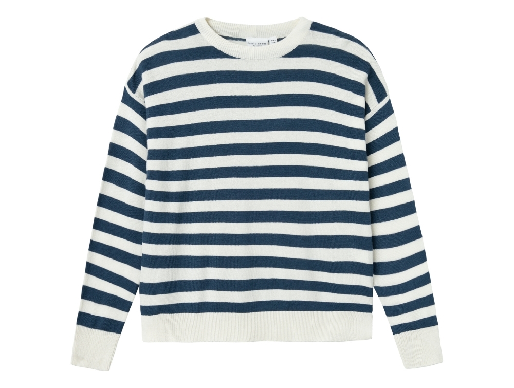 Skøn stribet strik i løs pasform i farven dark denim fra Name It.