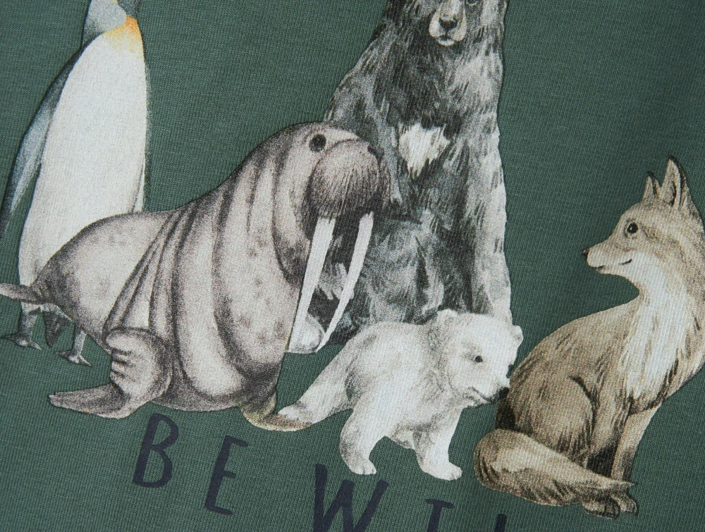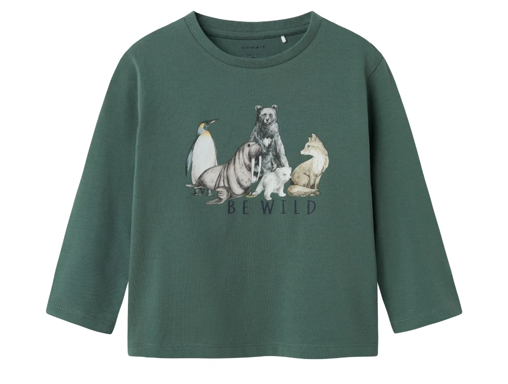 Langærmet top i farven dark forest med 'be wild' fra Name It.