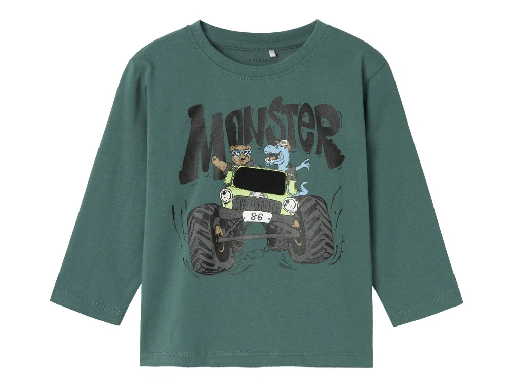 Langærmet top i farven dark forest med print og flap, der kan åbnes, fra Name It.