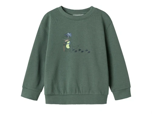 Sweatshirt i farven dark forest med krokodilleprint fra Name It.