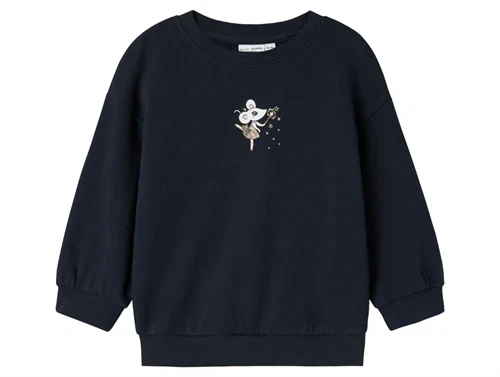 Sweatbluse i farven dark sapphire med skønt print fra Name It.