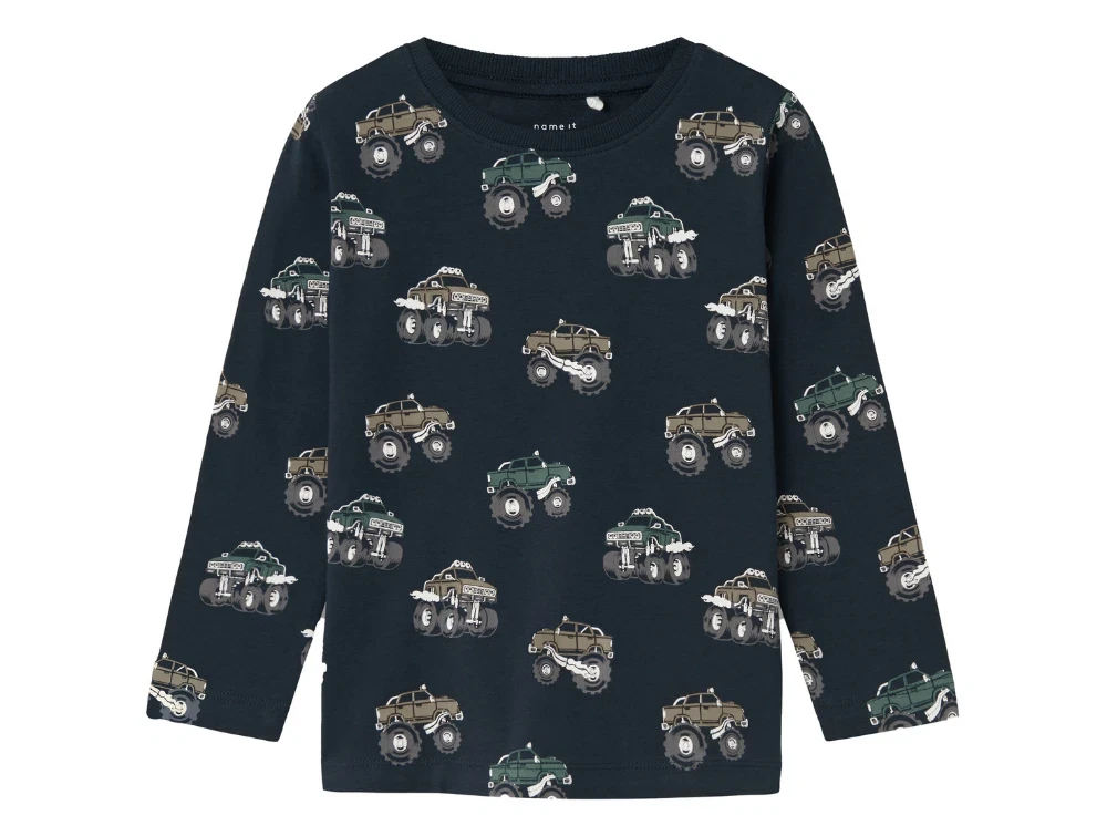 Langærmet top i farven dark sapphire med biler fra Name It.