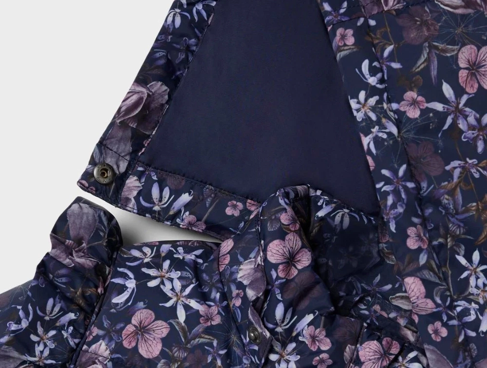 Vinterjakke i puffer i farven dark sapphire med blomsterprint fra Name It.