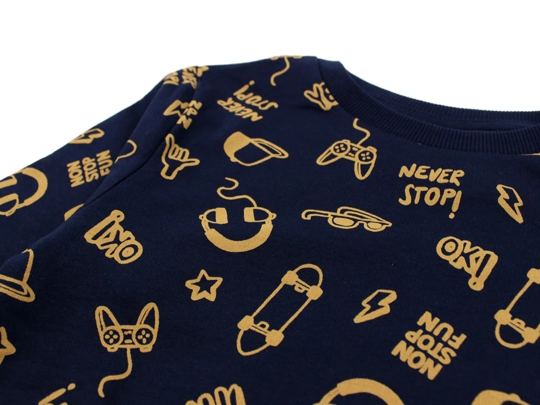 Sweatbluse i farven dark sapphire med skateboard tema fra Name It.