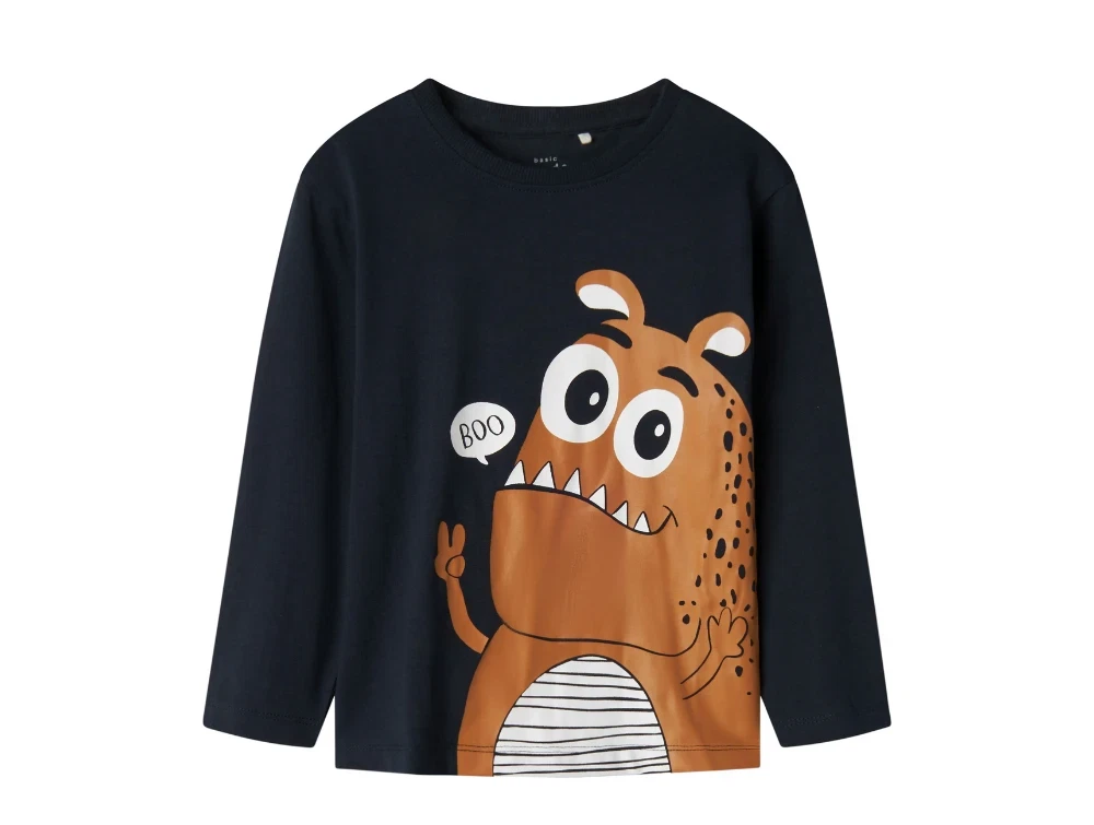 Langærmet top i farven dark sapphire med Boo-print fra Name It.