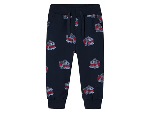Sweatbukser i farven dark sapphire med print af brandbiler fra Name It.