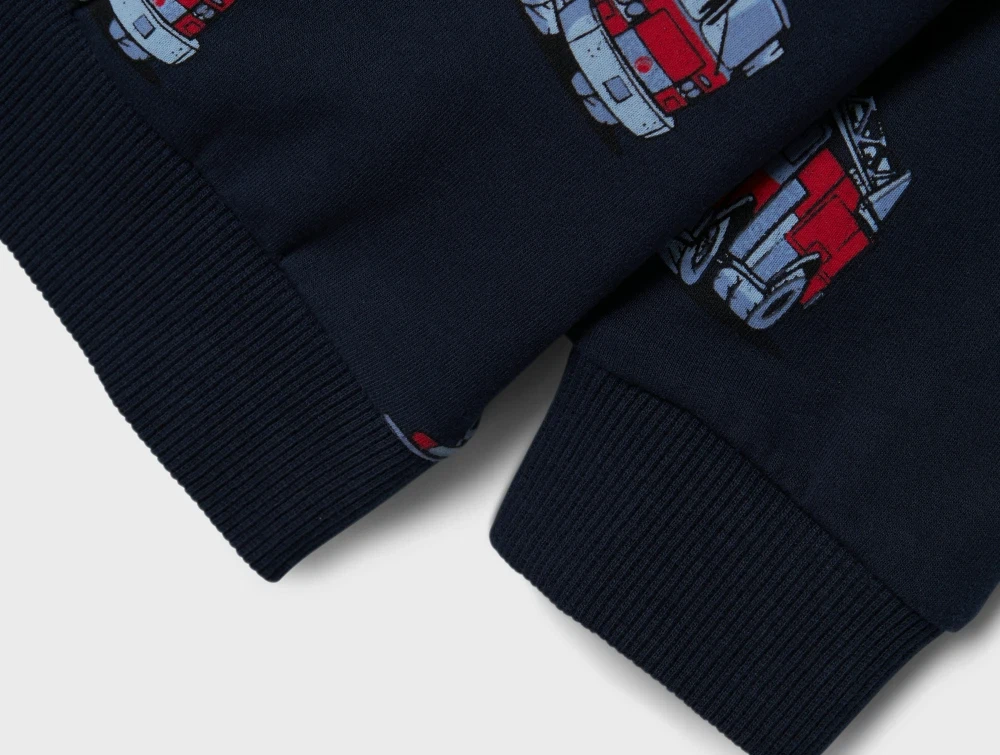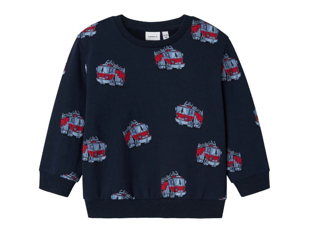 Sweatbluse i farven dark sapphire med print af brandbiler fra Name It.