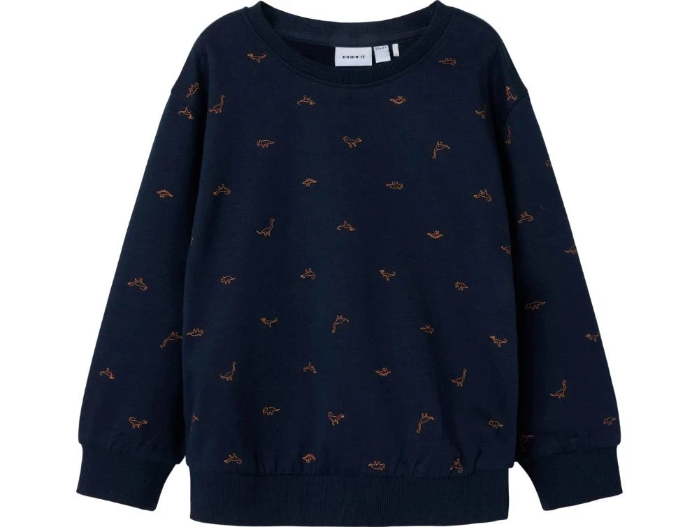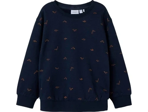 Sweatbluse i farven dark sapphire med dinoprint fra Name It.
