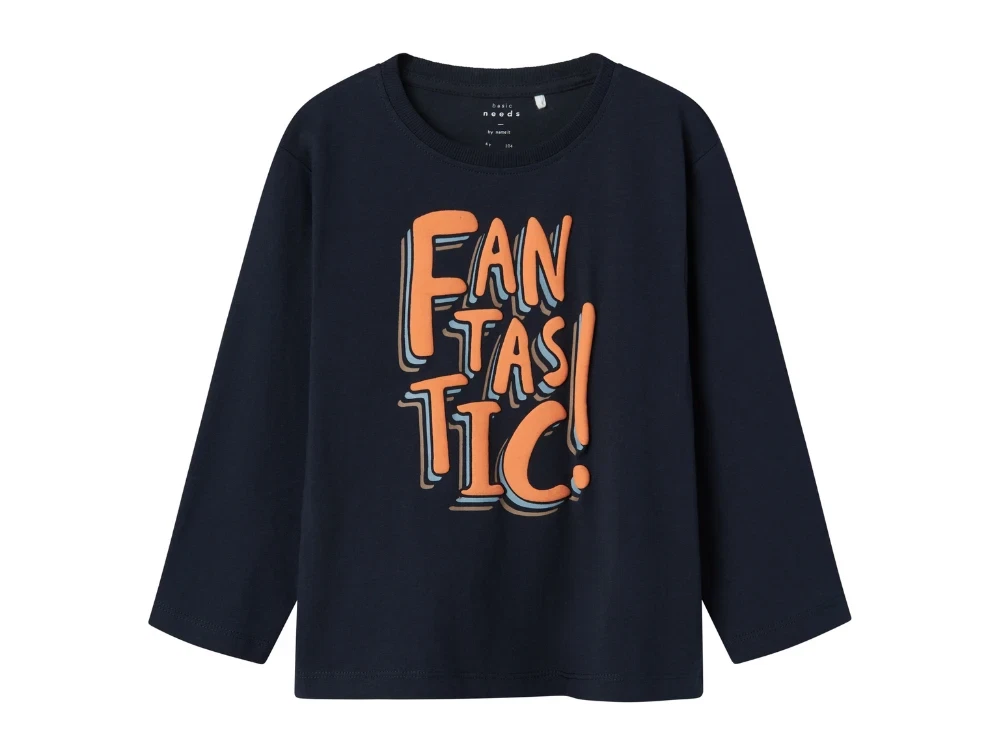 Langærmet top i farven dark sapphire med Fantastic gummiprint fra Name It.
