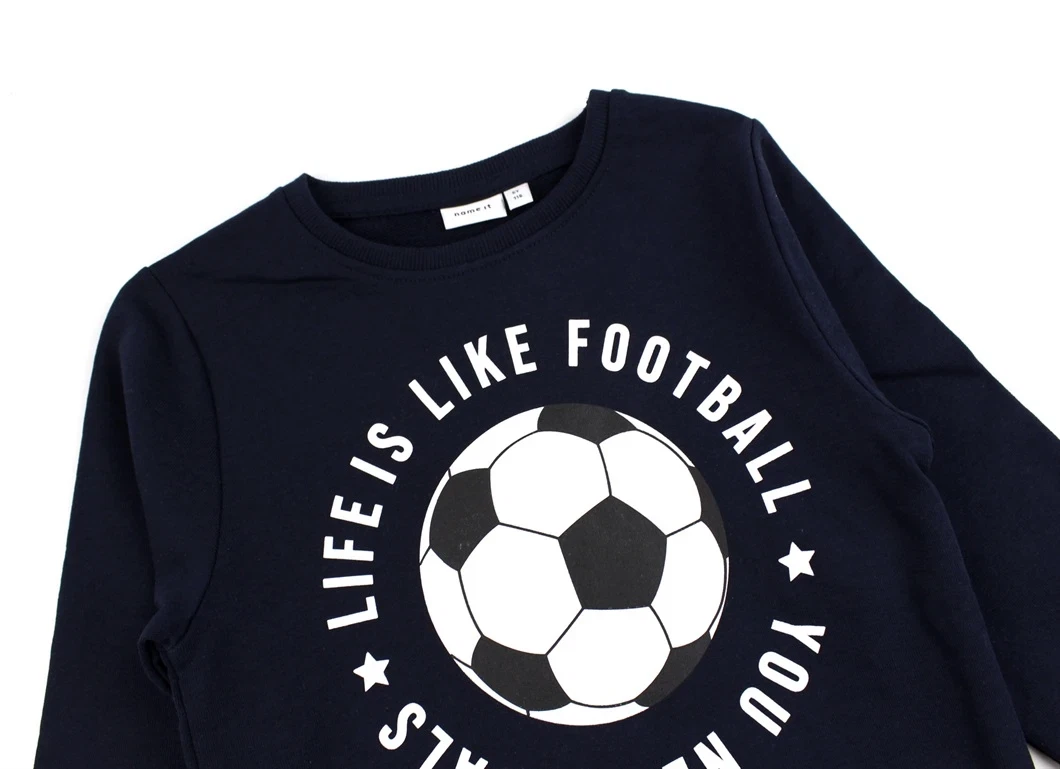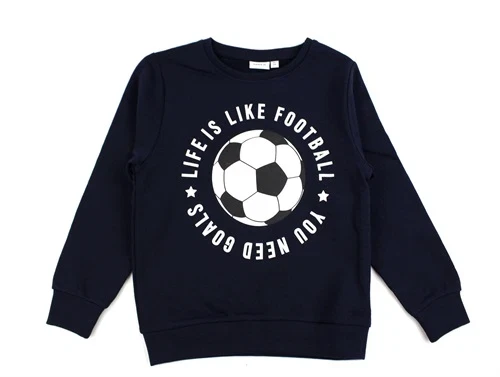 Sweatbluse i farven dark sapphire med fodboldprint fra Name It.