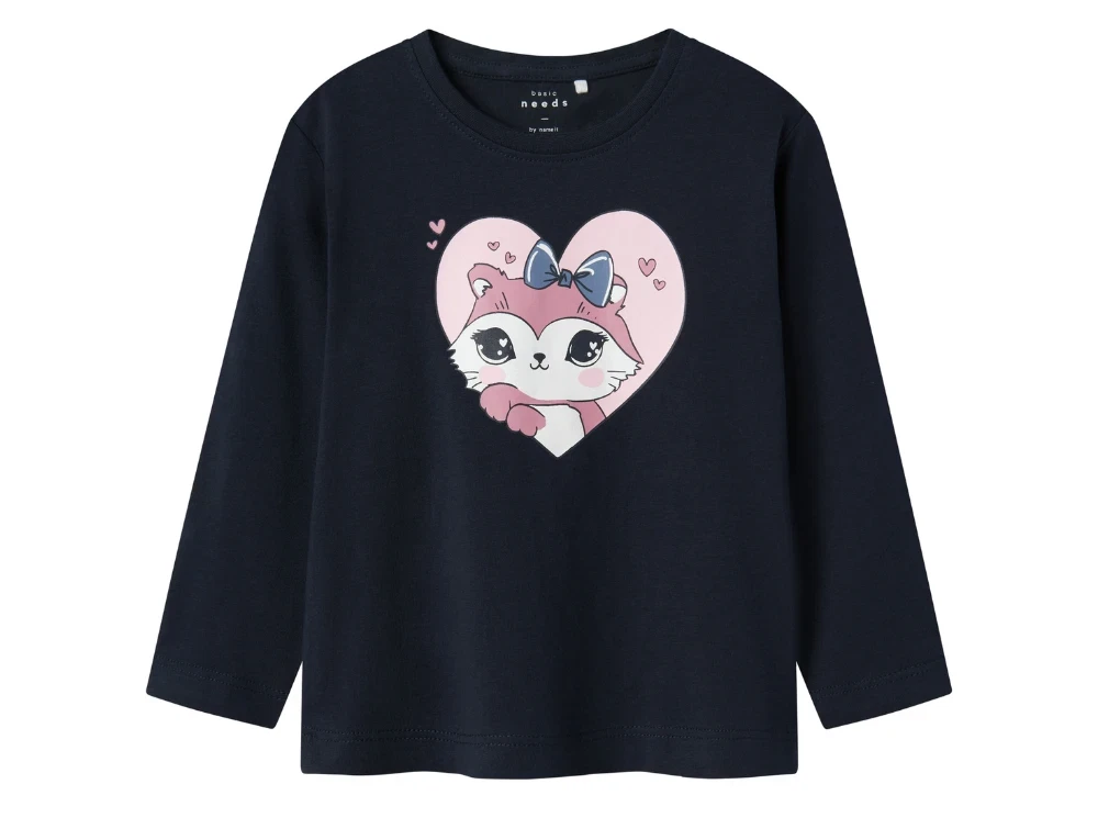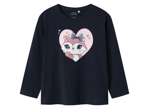 Langærmet top i farven dark sapphire med ræv i hjerte fra Name It.
