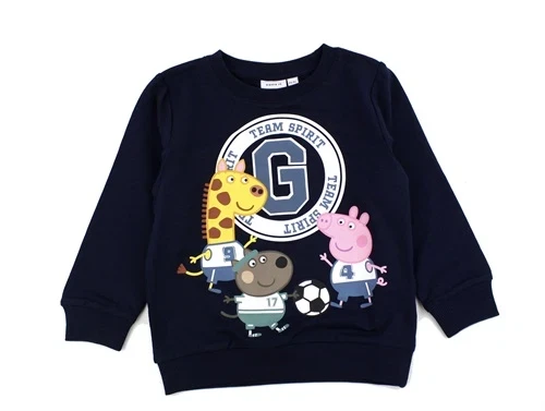 Sweatbluse i farven dark sapphire med Gurli Gris fodbold-print fra Name It.