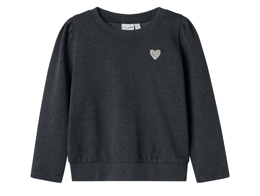 Sweatbluse i farven dark sapphire med sølvhjerte fra Name It.