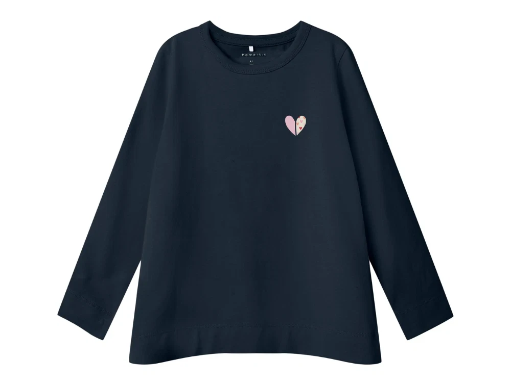 Langærmet top i farven dark sapphire med hjerte fra Name It.