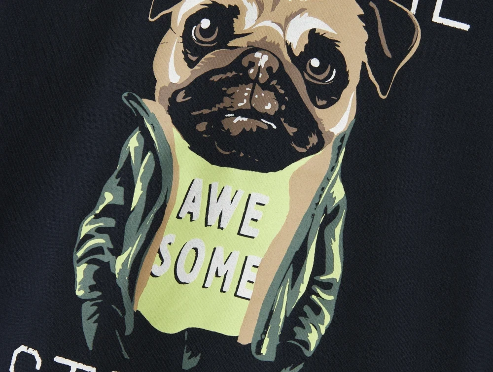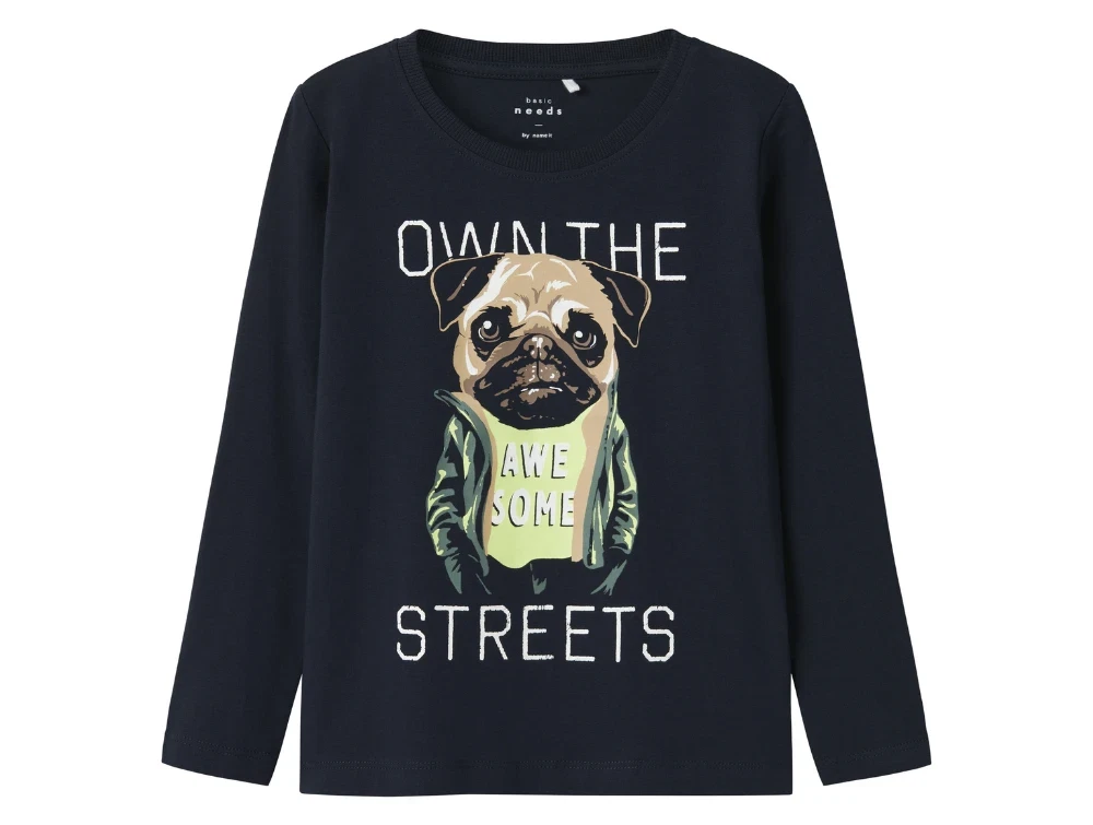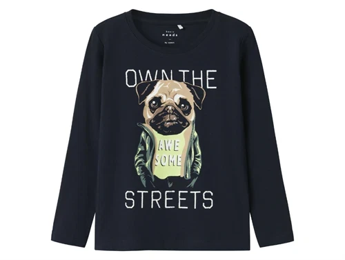 Langærmet top/bluse i farven dark sapphire med hundeprint fra Name It.