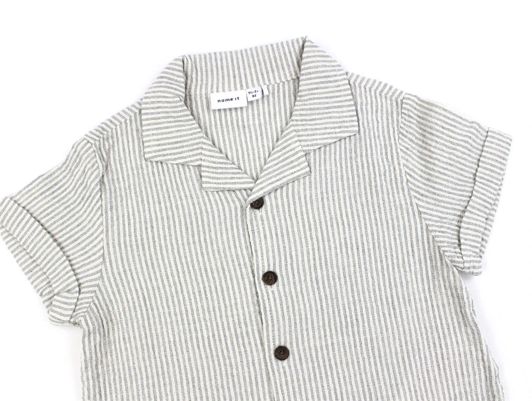 Stribet kortærmet skjorte i farverne dark sapphire/jet stream fra Name It.