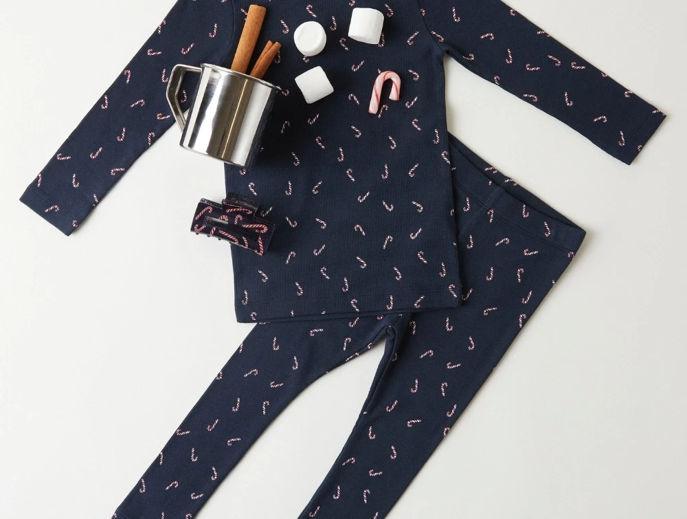 Legging i farven dark sapphire med julestok-print fra Name It.