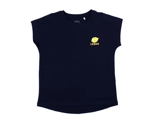 Skøn løs top i farven dark sapphire med et lille citronprint fra Name It.
