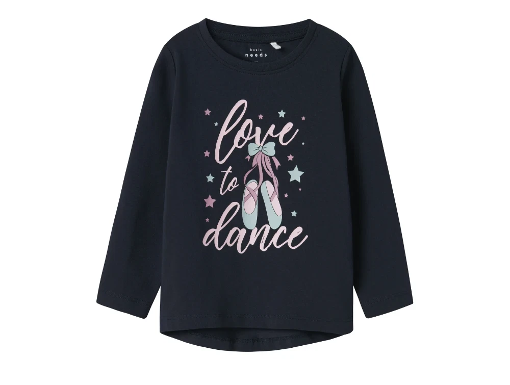 Langærmet top i farven dark sapphire med ballet tema fra Name It.