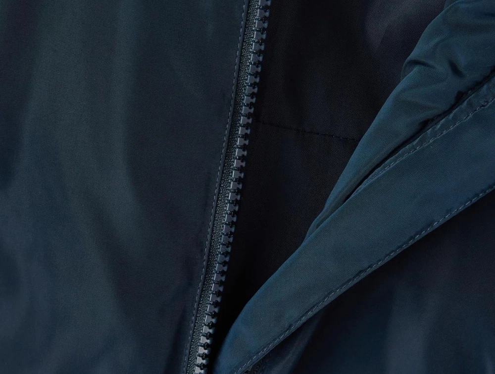 Jakken har to lommer og lukkes med lynlås.