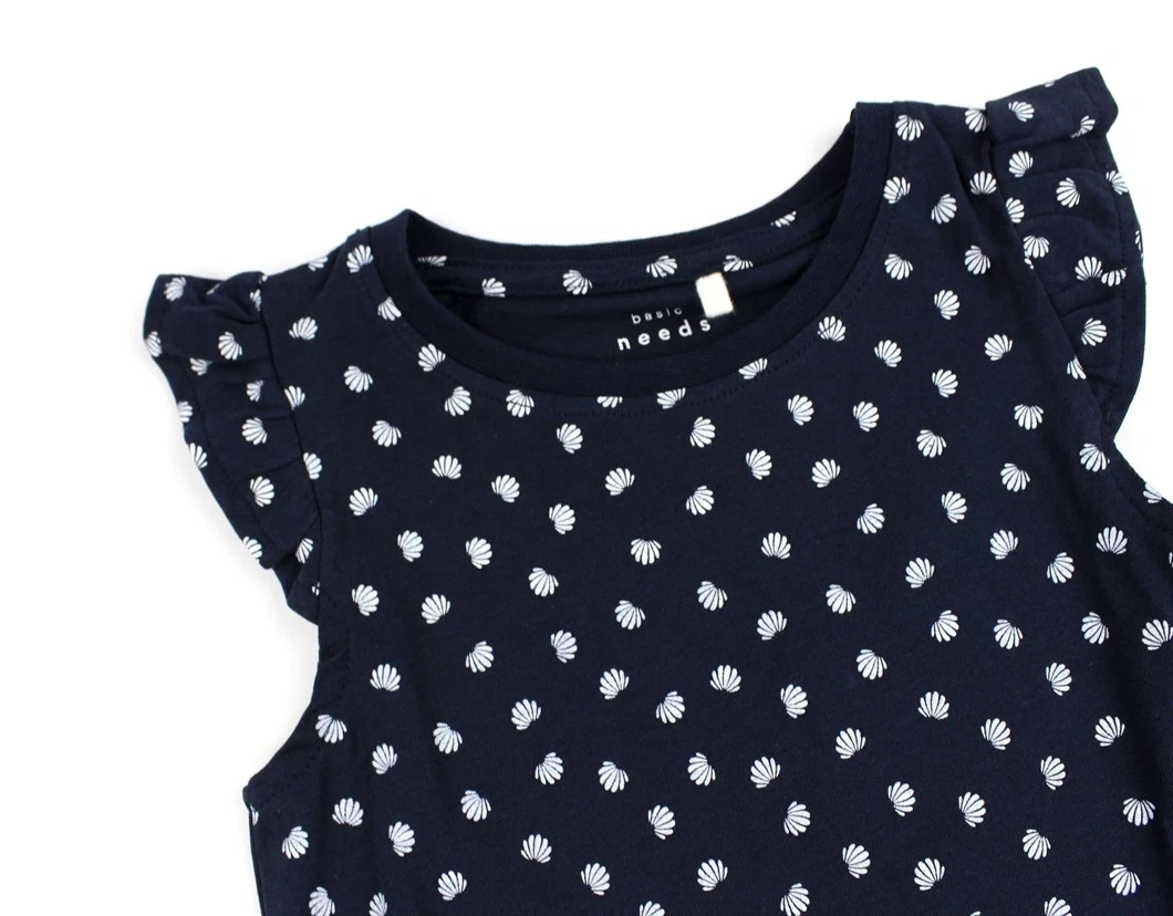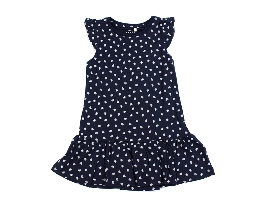 Kjole i farven dark sapphire med print af muslingeskaller fra Name It.