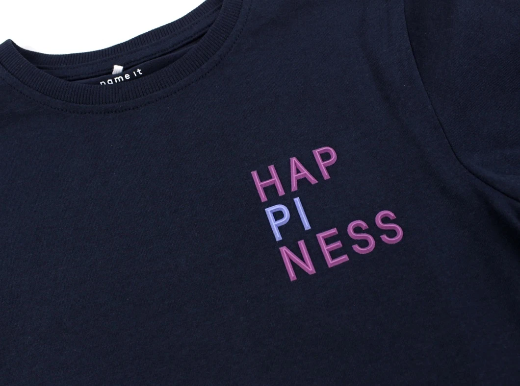 Kort løs t-shirt i farven dark sapphire med tekst-applikation fra Name It.