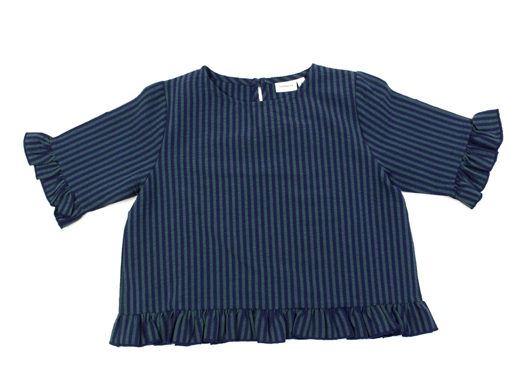 Stribet top med struktur og flæser i farven dark sapphire fra Name It.