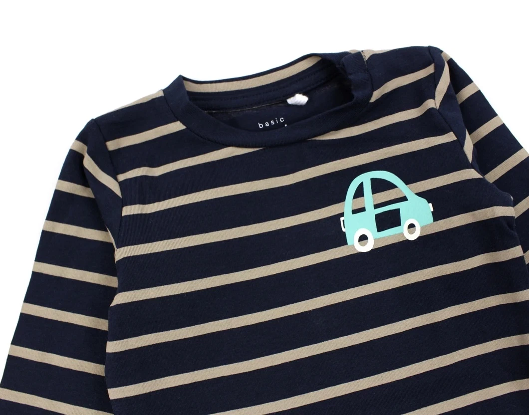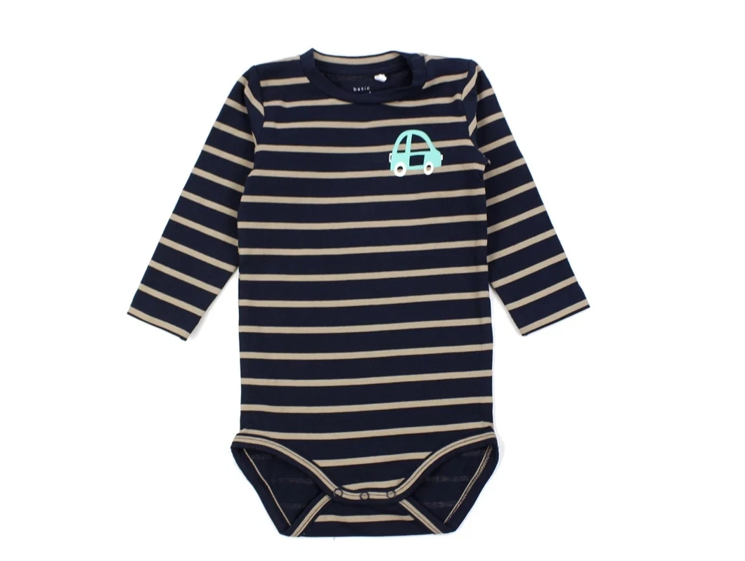 Body i farven dark sapphire med striber og bilprint fra Name It.