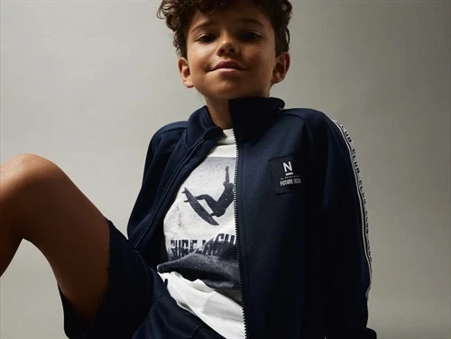 Cool sporty sweatcardigan i farven dark sapphire med lynlås og hvidt kantbånd fra Name It.