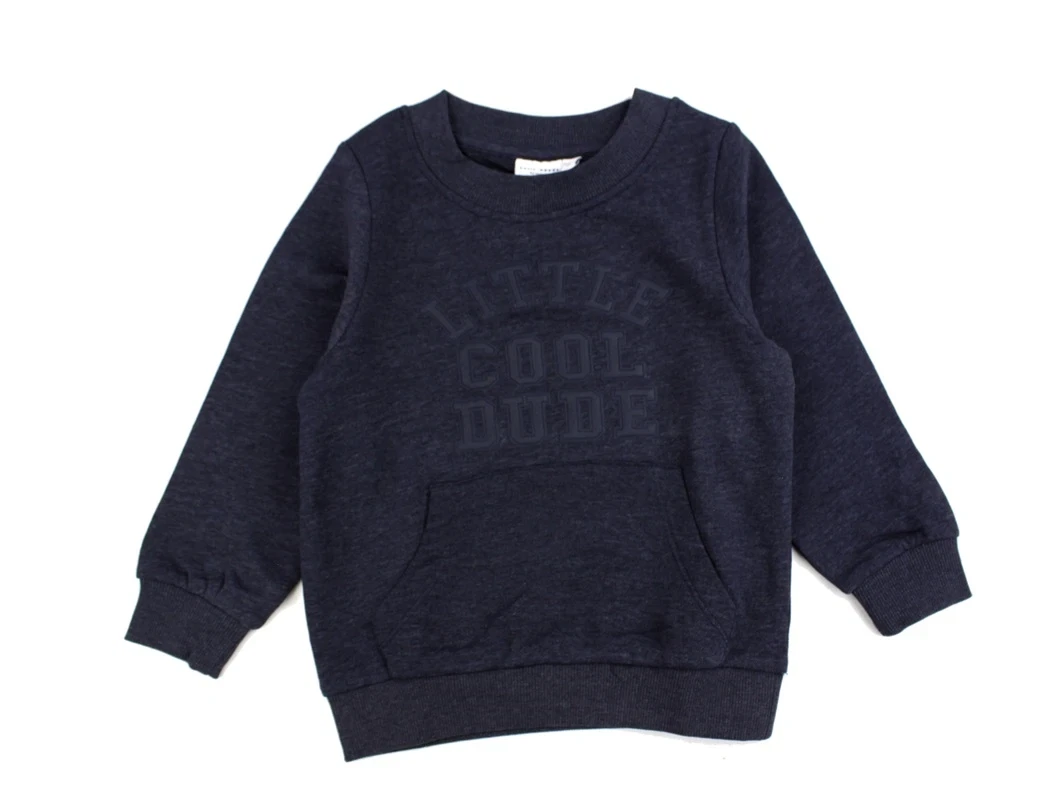 Blusen har en forlomme og tekstapplikation "Little cool dude".